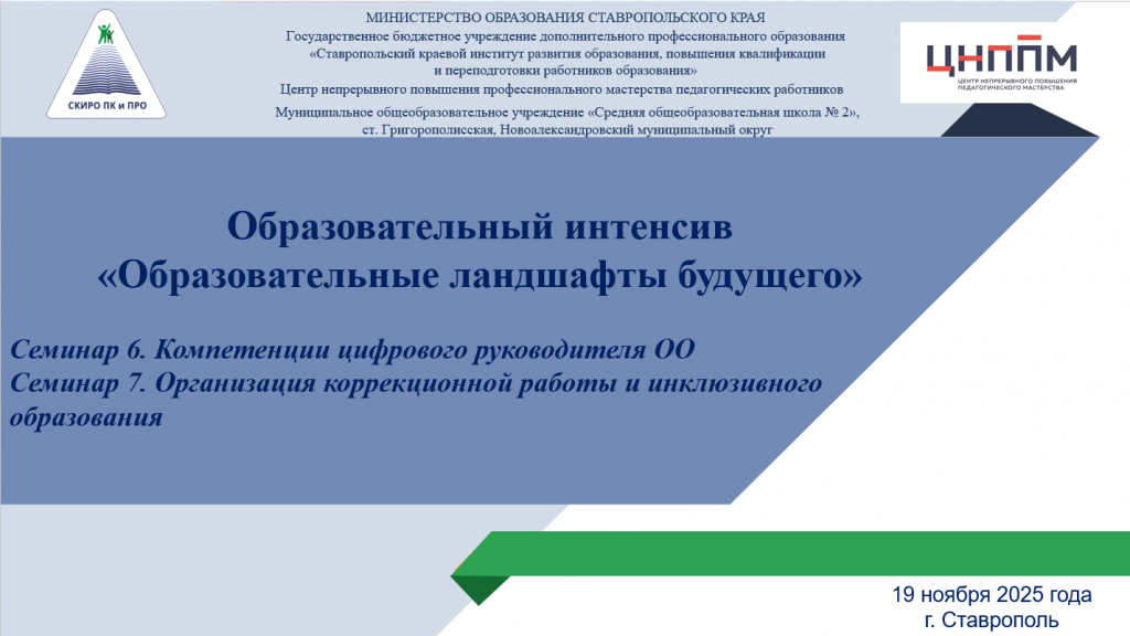 19 ноября 2025 года в МОУ СОШ № 2 станицы Григорополисской успешно завершилась серия семинаров, прошедших в рамках образовательного интенсива